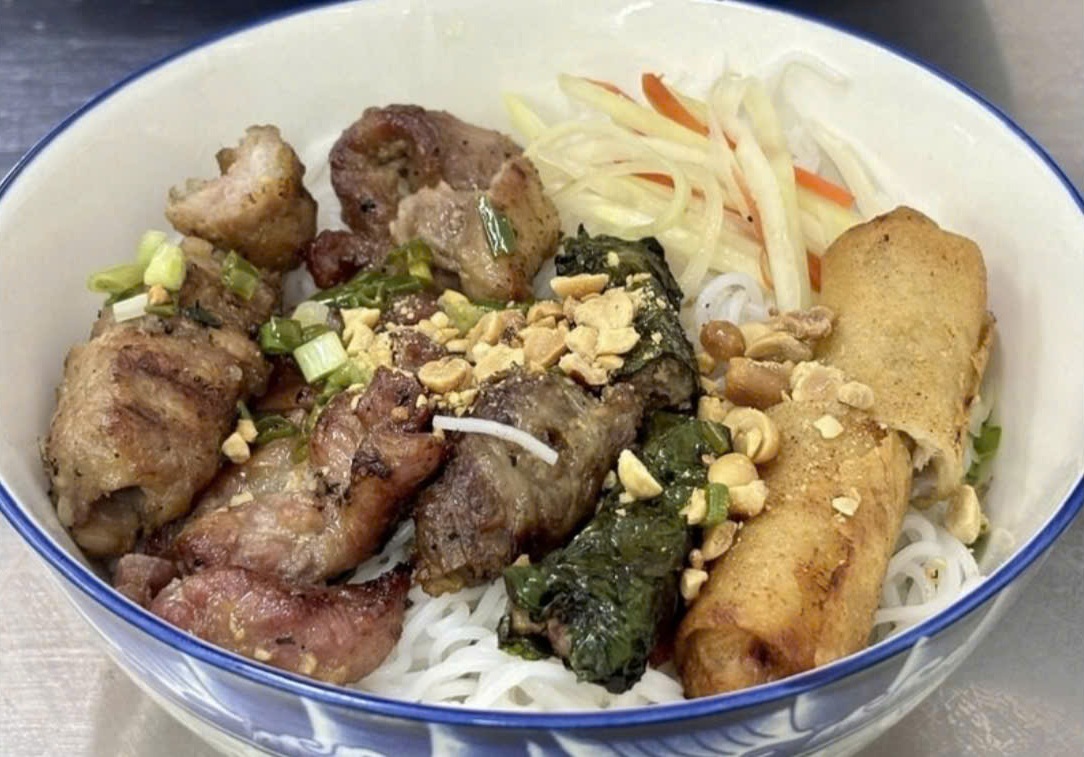 Bún thịt nướng Kiến Tổ là sự kết hợp giữa thịt nướng, nem nướng thơm lừng cùng chả giò với các rau, nước mắm đậm đà tạo ra món Bún Thịt nướng ngon tuyệt.